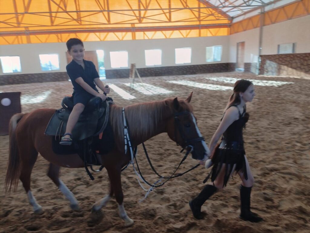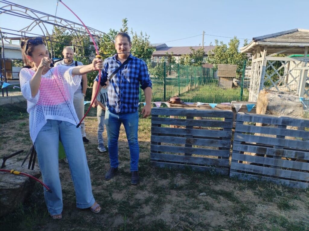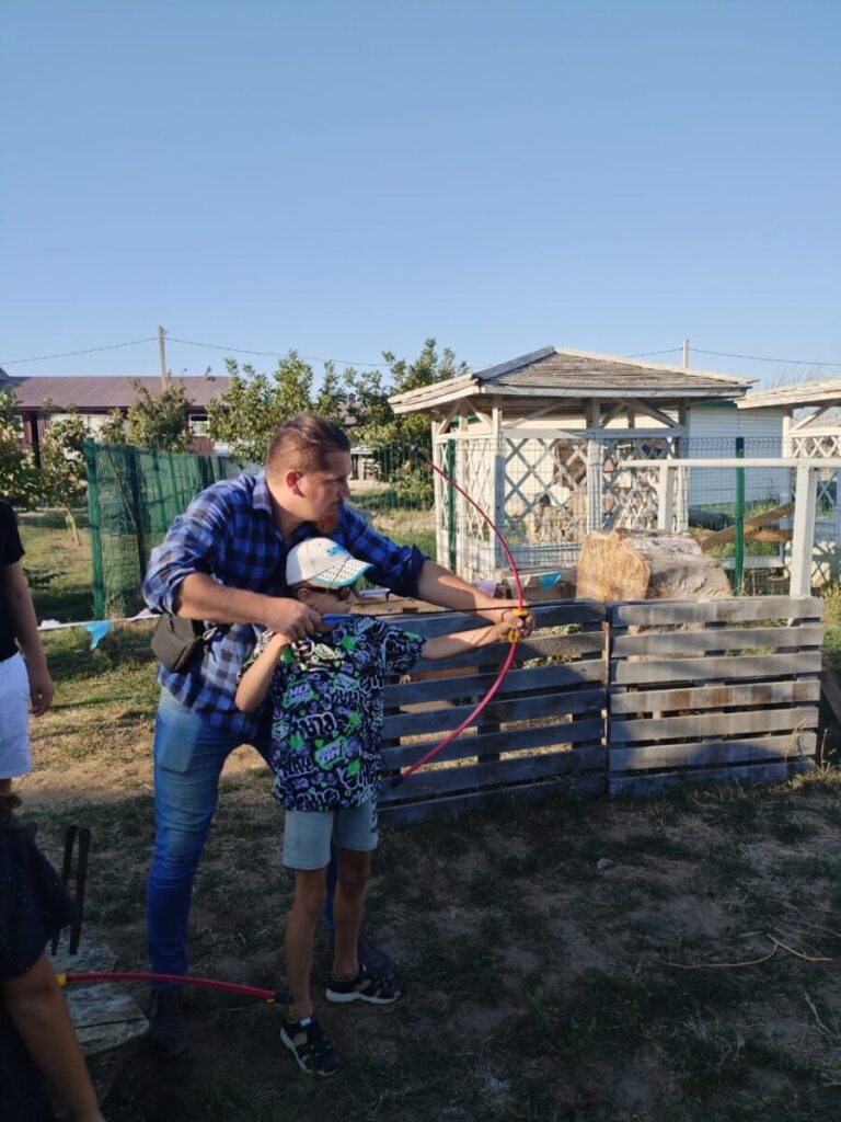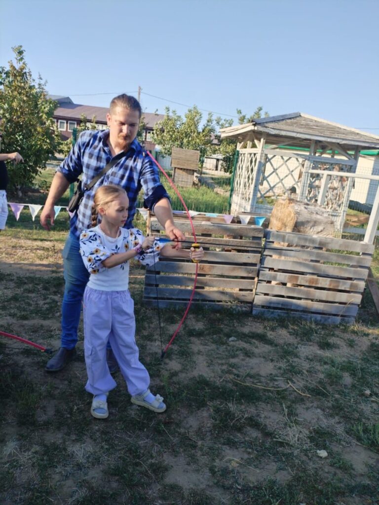 Ребятам провели два мастер класса : по уходу за животными и по стрельбе из лука. С большим интересом ребята слушали , а потом принимали участие Ребята чистили и кормили животных, катались на лошадях . Не остались равнодушными и родители , тоже метко стреляли из лука , попадая в цель .