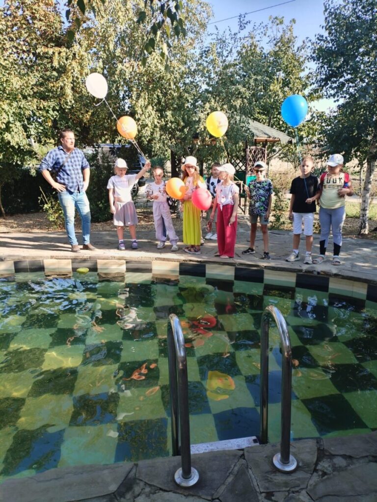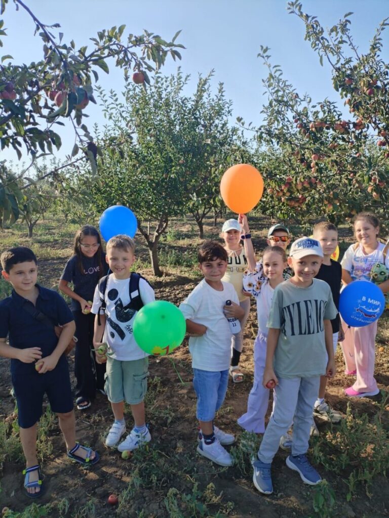 Побывали ребята в яблоневом саду , в бассейне , пообедали в уютном зале.