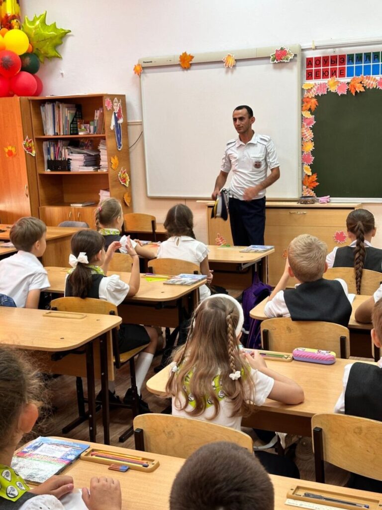 К нашим ученикам пришел инспектор ДПС Мкртчян Максим Нверович.